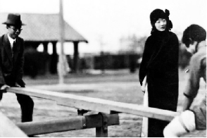 溥仪和妹妹玩跷跷板,婉容站在旁边观看