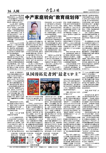 有这样一位“硬核奶奶”:她是中国原创漫画杂志《北京卡通》(见左图)的开创者之一,和同事们一起闯出中国二次元(动漫、游戏等二维文化内容)最早的一片天地;她曾带领团队从零开始摸索漫画语言,召集一群年轻的创作者,催生出一系列经典国漫;她还参与举办了国内第一届漫展和Cosplay走秀。退休后,从62岁开始,这位“二次元拓荒者”又以“最老UP主”的身份重返“赛场”,和年轻人一起追番、聊剧情,批评教师砸孩子手办、撕孩子小说的行为,用幽默犀利的点评圈粉无数。