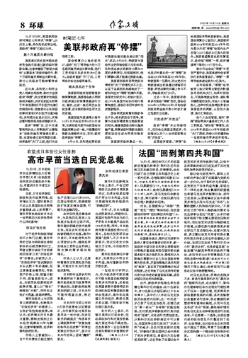 在个人生活层面,每次“停摆”都会带来大量政府工作人员工资拖延、“被休假”等情况。在2018年年底至2019年年初政府“关门”期间,持续35天的僵局给一些联邦雇员带来经济困难。 (摘自10月2日《齐鲁晚报》)