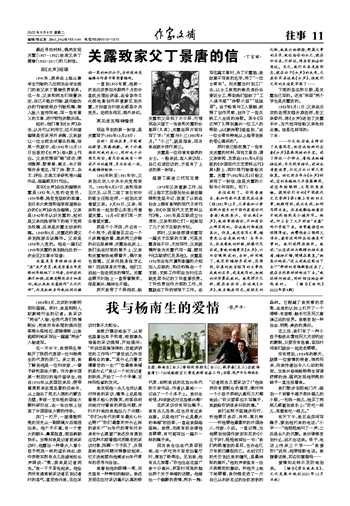 ……今天饭后我去拜访了关露同志,把您送给她的全套《女声》恭奉到她的手里。说了将近一个钟头,看起来她精神还好,目光较有神采,说话也清楚连贯,记忆力比以前又有恢复。回忆到当年办《女声》时说,您的来稿她几乎每篇都用,说您年轻聪明,文笔优美流畅。提到你们出的《中国现代文艺资料》第6辑上有她的文章,她颇愕然,说正生病,如何写得出来。后来我翻给她看后才恍然悟到是令媛所写。她说,印上去了又不好把“关露”两个字抠下来。非常感谢您的深情厚谊。她赞扬老三聪明又淳朴,兼有这两种品性确是可贵的。我们谈得很热烈。我说:“从您说话与眼睛的神采来看,精神不错,慢慢在康复。”她高兴地说:“这么说我还能活下去!”“那样的苦难都整过来了,现在当然要好好地活下去。”我这样对她说,同时相信她会好起来的。 (摘自《世纪》2022年第4期)