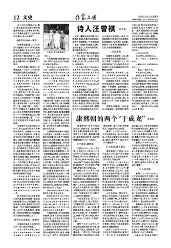 康熙朝的小于成龙,比大于成龙小21岁。由于两人都做过直隶巡抚,当地有民谣称颂:“前于后于,百姓安居”。
