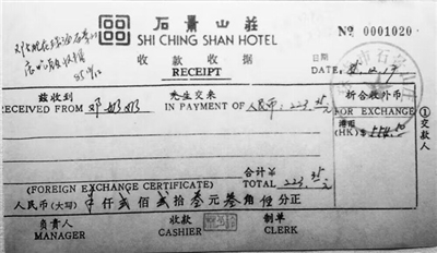 邓颖超在珠海市石景山庄吃饭付费223.35元收据(见左图),现在邓颖超纪念馆中展出。收据中,工作人员亲切地称呼付款人:邓奶奶。左上角写明日期和缘由:“邓大姐在珠海石景山庄吃饭收据。”收据开票时间为1985年12月17日。这张收据,是邓大姐在珠海市石景山庄吃完饭后,向饭店所付所有随行人员餐费的一张收据。