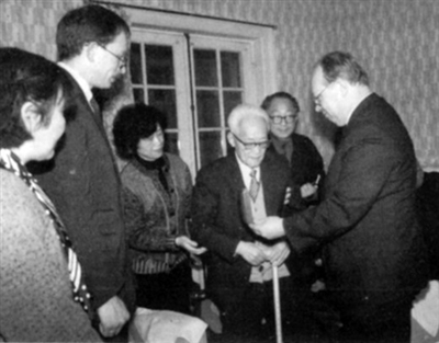 不一会儿,时任苏联驻上海总领事斯特罗科、文化专员伊古尔·丘马科夫斯基等一行人,到达了巴老寓所。他们来到客厅,一一与巴老握手致意,并用流利的中文问候:“巴金先生,您好吗?”