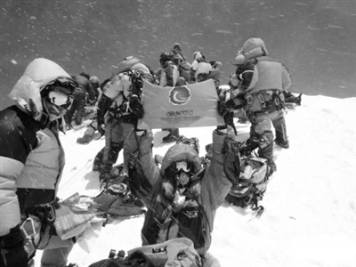 我在2009年的那次登珠峰就失败了。2010年我从珠峰南坡上去的时候,遇到很多深不见底的大冰裂缝,架了一个很长的梯子,我从梯子上往下爬,但没想到等我走到了,天已经亮了,上午天气热,冰雪就开始化了,在冰雪里梯子的三个爪有两个都已经脱出来了,我爬到梯子中间时稍微一偏,梯子立刻转过来了,我回头一看下面万丈深渊,掉下去肯定没救,然后等了几分钟后心静下来,我就慢慢地倒着爬,爬了五六米,脚一落到那个雪地上,立刻就跪下了,人都瘫了,所以这种风险就是瞬间的。