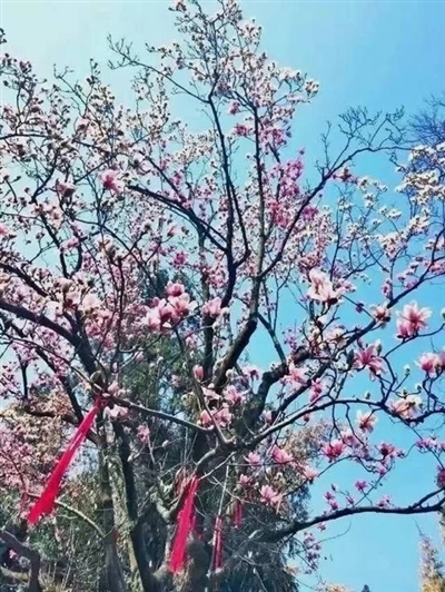 作为全国最早修建的“官祠”,陕西勉县武侯祠在历史长河中经历了千百年的风霜洗礼。祠内皂角、汉柏、凌霄等众多古木中,最抢眼的当属一株有着400多年树龄的古旱莲,它也是世界唯一一株现存古旱莲,被誉为“植物熊猫”。旱莲高四丈有余,干粗似面盆,其含苞十月,花期仅十天,如同“十月怀胎”,又被称为女人花。眼下,古旱莲花苞已经绽放,花蕊呈粉红色,酷似莲花,娇艳多姿,临风摇曳,别有一番景致。