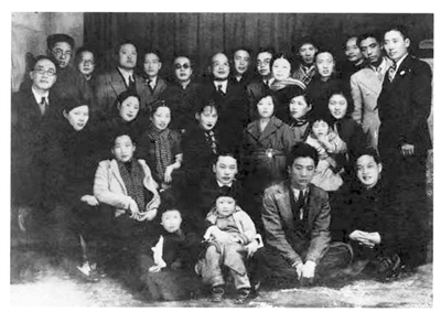 1937年张西曼与田汉、阳翰笙、常任侠等合影,后排左七穿西装者为张西曼,后排左八为田汉