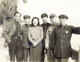 董德民连忙谢过田汉和阳翰笙(见中图,右起田汉、洪深、阳翰笙、黎莉莉、陈白尘、郑君里),然后收拾起担子来。田汉和阳翰笙见没事了,也匆匆朝码头走去。离开时,董德民才弄明白,原来重庆卖担担面的有两帮人,大家的挑子上都印了标识,不能越界,越界会被视为侵占对方的市场。