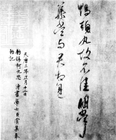 有关《鸭头丸帖》的传世资料,最早见于《淳化阁帖》,那时藏于宋太宗秘阁内,后见于宋徽宗时所撰《宣和书谱》,南宋时仍在宫廷内府。以后为元文宗收藏,天历三年(1330)赐予奎章阁鉴书博士柯九思。明代又入大内,神宗皇帝总是带着它出入。万历中,为新安收藏家吴用卿所有,刻入《余清斋帖》,万历四十年陈元瑞又刻入《玉烟堂帖》。万历、崇祯时入吴新宇家,清光绪时为徐叔鸿所得,后即归叶恭绰收藏。