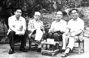 艾芜(右二)与少数民族作家意西泽仁(左一),左二为蹇先艾、右为陈之光