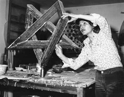 伊朗艺术家穆尼尔·法曼法玛妮(见左图,在工作室创作)的代表作《九边形》通过使用伊朗传统的几何图案和切割玻璃马赛克技术尽情渲染中东艺术底色,与此同时大胆借用西方抽象主义话语,表达对现代社会的思考和感受。