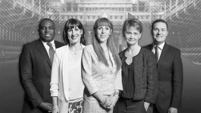 左起:英外交大臣戴维·拉米、财政大臣蕾切尔·里夫斯、副首相安杰拉·雷纳、内政大臣伊薇特·库珀和卫生大臣韦斯·斯特里廷