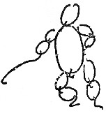 这次避难中,瞿秋白绘制了两幅关于阿Q的漫画。其中《我手执钢鞭将你打》(见图),堪称既抽象又写意“阿Q漫画”,整个人物由10个大写的英文字母Q,巧妙构成,包括头、身体各一个,四肢各两个,共10个,构思独出机杼,造型夸张传神,令人莞尔。画面左边,前臂上的一个Q字,其一撇特别长,略有弯曲,形似钢鞭,非常契合小说中阿Q的唱词:“我手执钢鞭将你打……”整幅漫画线条简洁,想象奇特,妙趣横生。