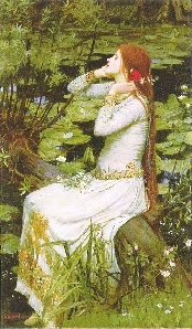 她与花儿一并落入那正在低泣的小溪中,服裳四散漂淌……可不多一会儿,那浸满溪水的衣衫渐渐沉重,这可怜的人儿歌还没唱完,便已深陷到了泥中。