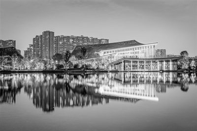 湖边有幢白色的建筑吸引了我的目光,它的外形像两朵洁白荷花,随行的人介绍说那就是举办了多次优秀作品展览的天府美术馆,据说五代时期,蜀后主孟昶曾下令成都百姓在自家围墙上遍植芙蓉。“每至秋,四十里如锦绣”。成都“蓉城”,因此得名。而此美术馆的设计理念正源于此。花瓣造型的建筑曲线,柔美却富有张力。轻盈、灵动,远远看去,真如两朵荷花,开在湖上。