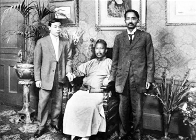 康有为(1858-1927,见图,中)在1904年踏上欧洲,开始了流亡之旅,这次旅行使他坚信中国艺术曾于很多重要方面都“几占第一位”,但从15世纪后则随着欧洲的领先开始衰落。美术馆见闻在康有为《欧洲十一国游记》中占据了可观的篇幅。《欧洲十一国游记》1905年于上海出版,和英国汉学家翟理斯《中国绘画艺术史导论》出版的时间和地点完全相同。