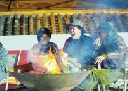 今年大凉山戏剧节为热爱戏剧的年轻人新设置了一个“高阶玩法”,不仅能看,还能创作。晚上10点多,年轻人还在围着篝火播放、讨论自己的作品(见图),濮存昕也凑上去听。“年轻人很坦诚,说真的没弄出什么作品。但苏格拉底说过一句名言——‘我只知道我什么都不知道’。他们把‘不知道’拍出来了,非常诚实,挺好。”