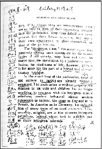 毛泽东阅看英文参考资料书刊像读中文书刊一样,爱在所读的书刊资料上圈圈画画,读到重要之处,他总是习惯用红铅笔或黑铅笔在有关的文字旁画上粗粗的着重线或圈圈点点;在有疑问处则打问号或写出质疑;发现有差错还认真地加以校正;对一些有重要参考价值的文章,他还做眉批旁注,并推荐给中央其他领导同志或身边工作人员阅读。