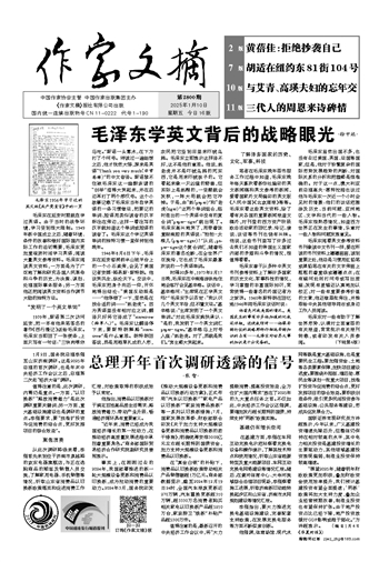 笔者在毛泽东晚年图书服务工作过程中知道,毛泽东晚年每天喜欢看新华社编印的英文新闻稿和英文参考的新闻,爱看国家外文局编印的英文版《人民中国》《北京周报》等等。毛泽东看这些英文资料,除了看有关各国的重要新闻报道文稿外,对刊登的西方资产阶级政治活动家的回忆录、传记、演说、谈话等书刊也饶有兴味。他说,这些书刊里写了许多过去我们不知道的帝国主义国家内部的矛盾和斗争的情况,很值得看看。