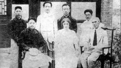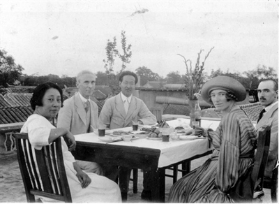 事实也确实如此,赵元任回忆道:“他(罗素)的健康恢复得很好,在回英国前,还作过若干次演讲,并参加几次盛大宴会。”其中也包括一些重要的聚会,尤其是在此期间,赵元任和杨步伟走进了婚姻殿堂,并请罗素、勃拉克小姐还有英国公使馆的班奈特到他们租住屋的屋顶花园小聚(见右图)。