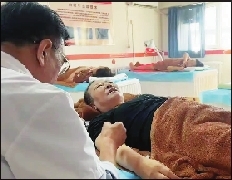 老人们在温泉小镇的中医院进行理疗