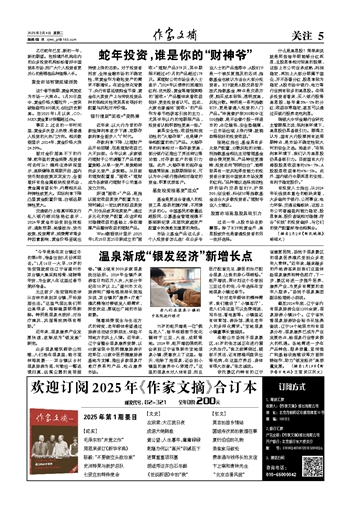 截至2024年底,辽宁省内有温泉旅游企业1200余家,温泉旅游小镇26个。辽宁省冰雪温泉旅游协会秘书长陈燕奎说,辽宁14个地级市均有温泉分布,温泉康养已成为产业发展热点,给温泉行业带来极大的机遇。各地需进一步在产品特色、服务质量、宣传推广和基础设施建设等方面深耕细作,助力“银发经济”高质量发展。 (摘自1月19日《新华每日电讯》 王莹 武江民文)