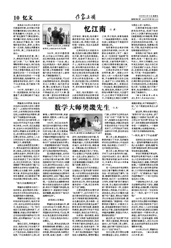 樊畿是与华罗庚、陈省身齐名的20世纪伟大的华人数学家之一,从线性分析到非线性分析,从有限维空间到无限维空间,从纯数学到应用数学,都留下了他辉煌的科学业绩。