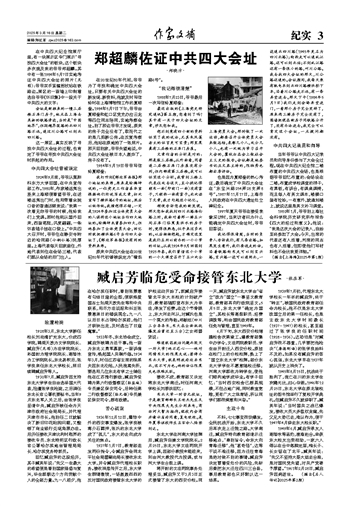 1980年1月,爷爷到上海社会科学院历史研究所作报告《四大的经过和意义》。他说:“我是这次大会的记录人,自始至终参加了大会。今天,出席的代表还有人活着,列席的同志也有人活着,但即使他们写材料也不会比我更详细。”