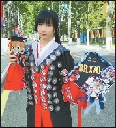 中国地质大学博士毕业生冰蓝笑(网名)将个人的热爱与毕业仪式巧妙结合,亲手改造“痛学士服”纪念求学终点。她受二次元文化启发,在博士服上缀满动漫角色“不二周助”的周边徽章(见右图),并且配色与红黑学位服呼应。这个角色陪伴她从初中到博士,尤其在读博阶段,“不二周助”自我怀疑却坚持的特质,成为她在实验数据推翻重写、投稿濒临延毕时的精神支柱之一。