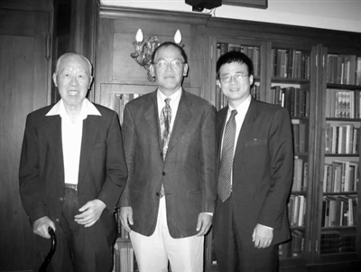 2003年九月作者(右)跟徐志摩孙徐善曾(中)儿子徐积锴(左)合影