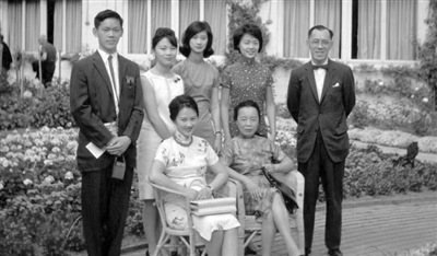 晚年张幼仪(前排右,左儿媳张粹文)和儿孙辈。后排右起,儿子徐积锴、孙辈徐行、徐稘、徐放、徐善曾