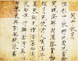 时童贯奉旨在三吴访书画奇巧者,留在杭州数月,蔡京陪同游玩,凡是所画屏风、扇面皆赠予童贯,童贯将其引荐,徽宗如获至宝,视为知音,并对蔡京加以重用。蔡京虽然恶贯满盈、声名狼藉,但他在文学和书法上的成就却非常出众。《宣和书谱》称其书“初类沈传师,久之深得羲之笔意,自名一家。其字严而不拘,逸而不外规矩”。时为“宋四家”之一的米芾曾说自柳公权之后,就属蔡京和蔡卞(蔡京之弟)的书法最好,其次才是他自己。可见蔡京的书法的确非同一般。